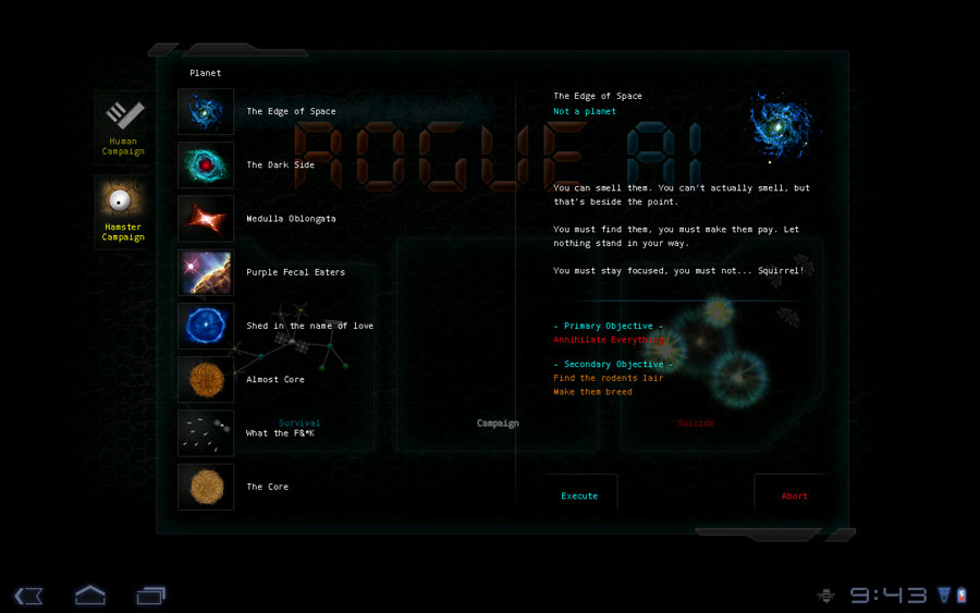 I have included a second campaign for free, should annihilating your race not prove sufficient. Stomping on suicidal space hamsters is just as much fun as smashing humans.